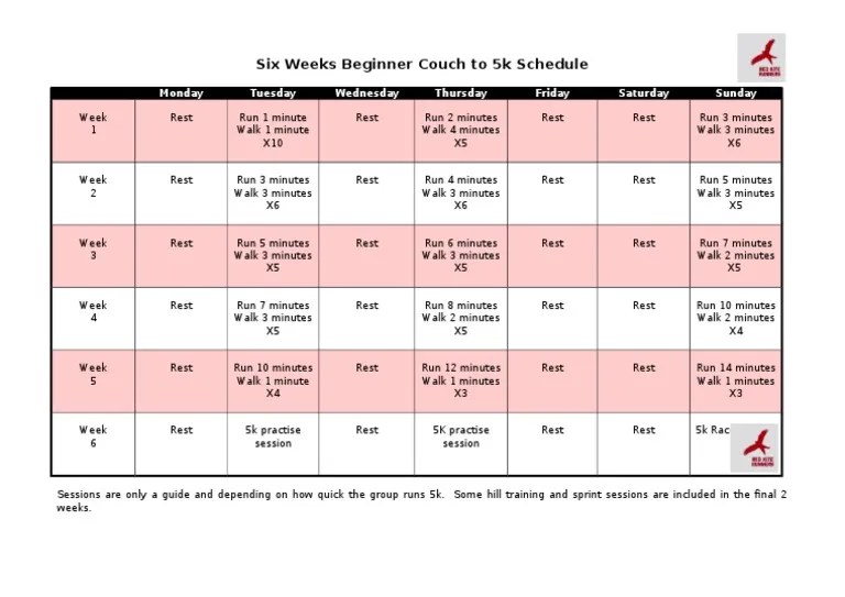 Web This Beginners Training Plan Will Help You To Build Your Fitness, Taking You From Couch To 5K In Just Six Weeks.